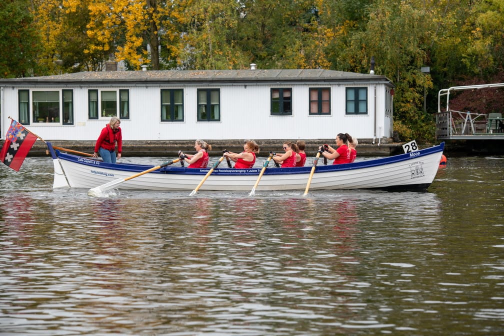 Moos is in 1994 gebouwd en kwam vrij snel in het bezit van ’t Juiste Tuig. De damesploegen roeien in deze sloep.
